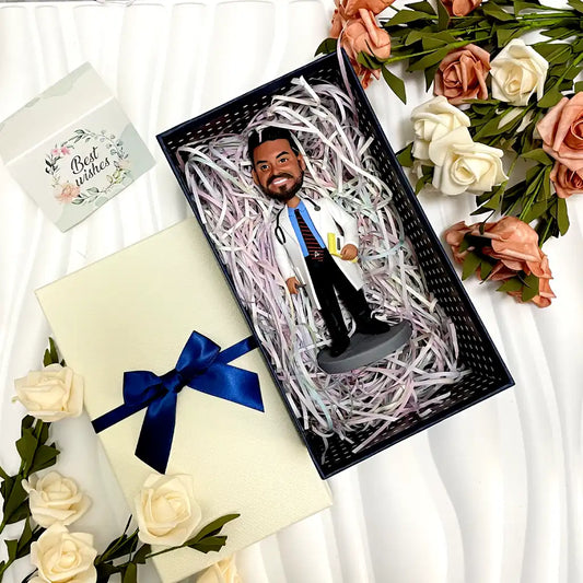 Our custom doctor bobbleheads are handcrafted from your photos to honor healthcare professionals with personality and detail.